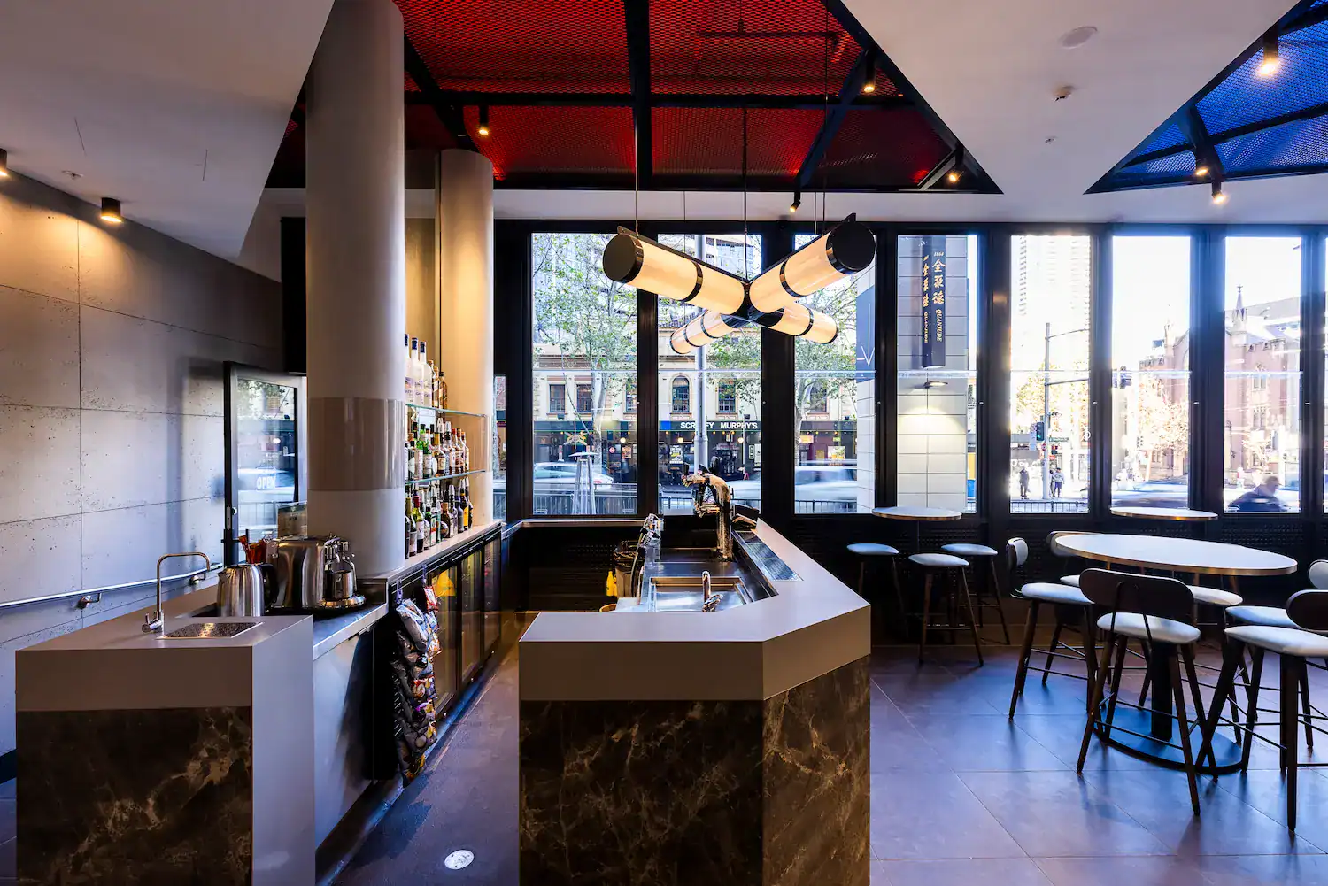 Fugen Constructions was engaged to deliver our second project for the Brickfield Hospitality group, World Square Bar refurbishment. This project saw the extensive renovation and upgrade of World Square Bar, located in the heart of Sydney’s CBD. Our scope of works included a façade upgrade, demolition and strip out of the venue, feature ceiling, new gaming areas and lounge spaces, new joinery and a brand-new main bar on the ground floor. Additionally, we constructed a new lounge area and upgraded the bathroom facilities on the lower ground level.